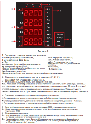 Ток | I1, I2, I3, ΣI (мин., макс. и потребл. сохраняются) |